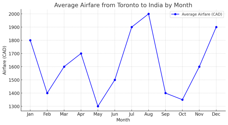 Finding cheap flights from Toronto to India requires strategic planning and knowing the best time to book. Airfare prices fluctuate based on seasonal demand, holidays, and airline promotions, so booking at the right time can save you hundreds of dollars. For the best deals on Toronto to India flights, book your tickets at least 2-3 months in advance. Prices tend to rise during peak seasons like: